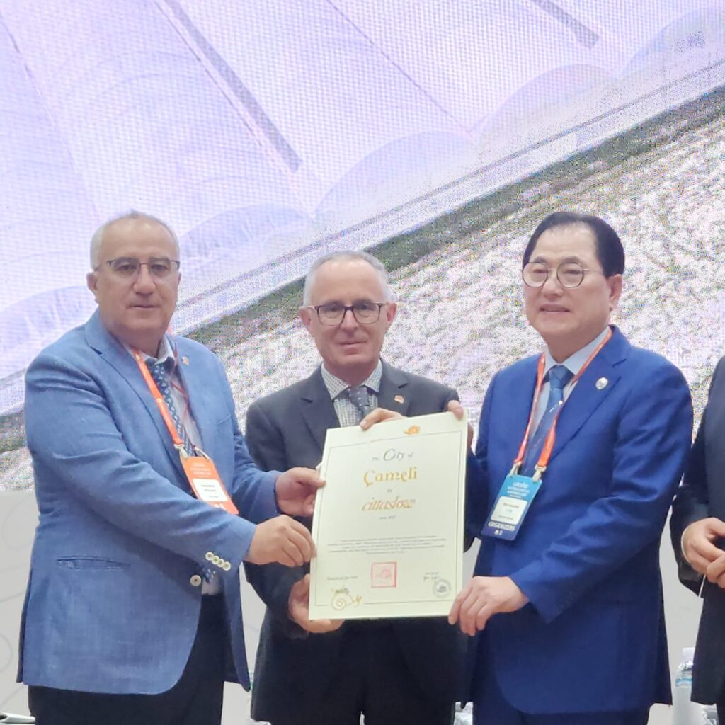 Denizli’nin Cittaslow (Sakin Şehir) unvanına sahip ilçesi Çameli, Güney Kore’de düzenlenen uluslararası Cittaslow Genel Kurulu’nda Türkiye’yi başarıyla temsil etti. Çameli Belediye Başkanı Cengiz Arslan, Güney Kore’nin Wando kentinde gerçekleştirilen ve 30 farklı ülkeden temsilcilerin katıldığı genel kurulda, ilçenin tarımsal üretim modeli ve sürdürülebilir kırsal kalkınma vizyonunu katılımcılarla paylaştı.